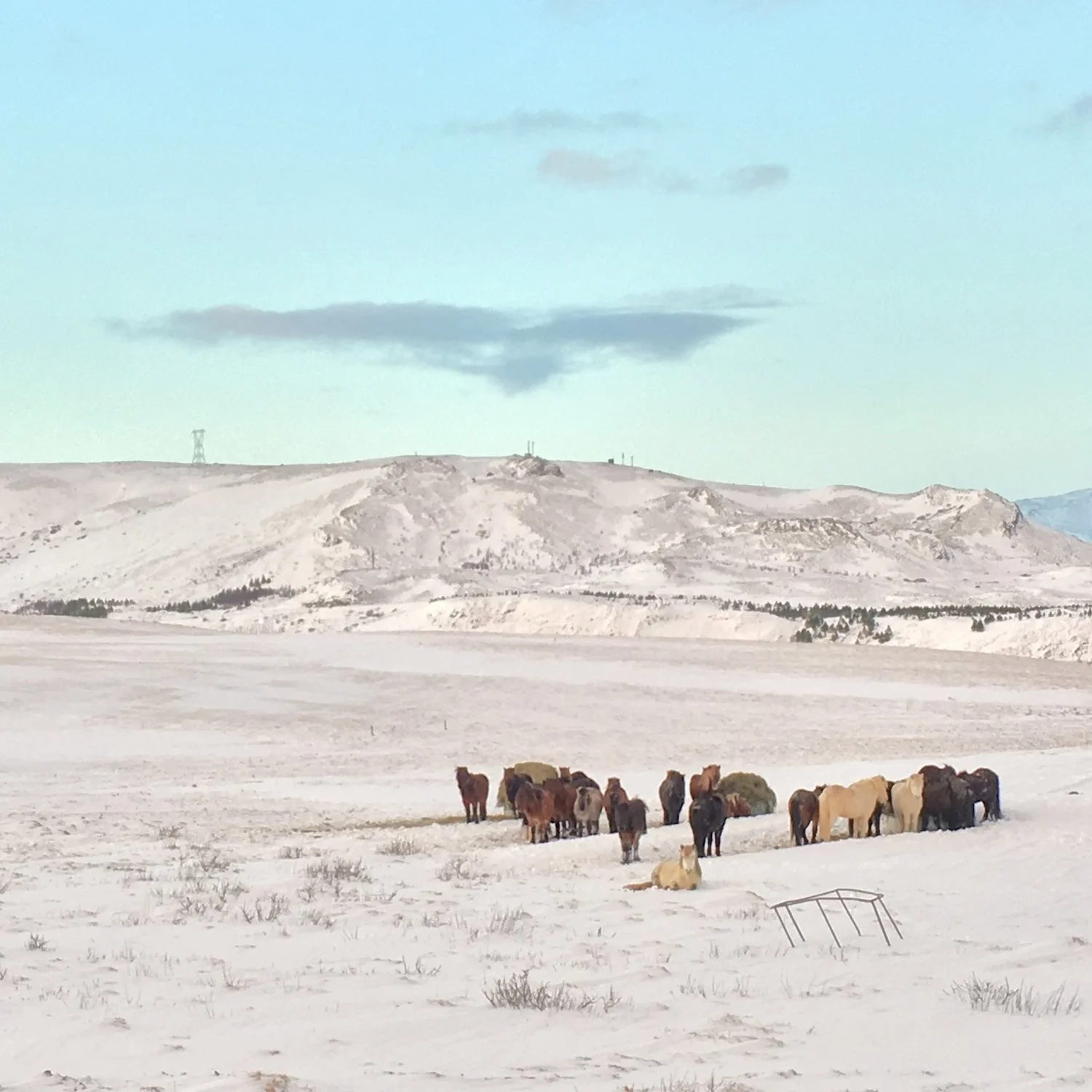 We drove to Reynisfjara from Thingvellir National Park, after leaving our cozy cabin. The drive was pretty straightforward, mostly just following Route 1 (which is also true if you’re driving from Reykjavik), but visibility was low on the day we went (plus we spent some time stuck in the snow on our way out; but that was nothing new, just a daily affair) so it took us much longer than expected. Google maps had quoted us about two hours from Thingvellir, but it took nearly four! It seemed like we were driving through micro weather systems: 10 minutes of sun, 10 minutes of snowstorm, 10 minutes of hail. That being said, when we did have sunlight, the view was absolutely spectacular. Daylight is short during the winter months, and this seems to prolong the periods of sunrise and sunset. For hours at a time, the sky is full of light blue and pink colors, with the sun beaming in the low horizon through the distant hills. This made the drive, at least a good part of the time, sheer joy. Plus, making it even more enjoyable, all along the highway you could see herd after herd of those cute Icelandic horses.